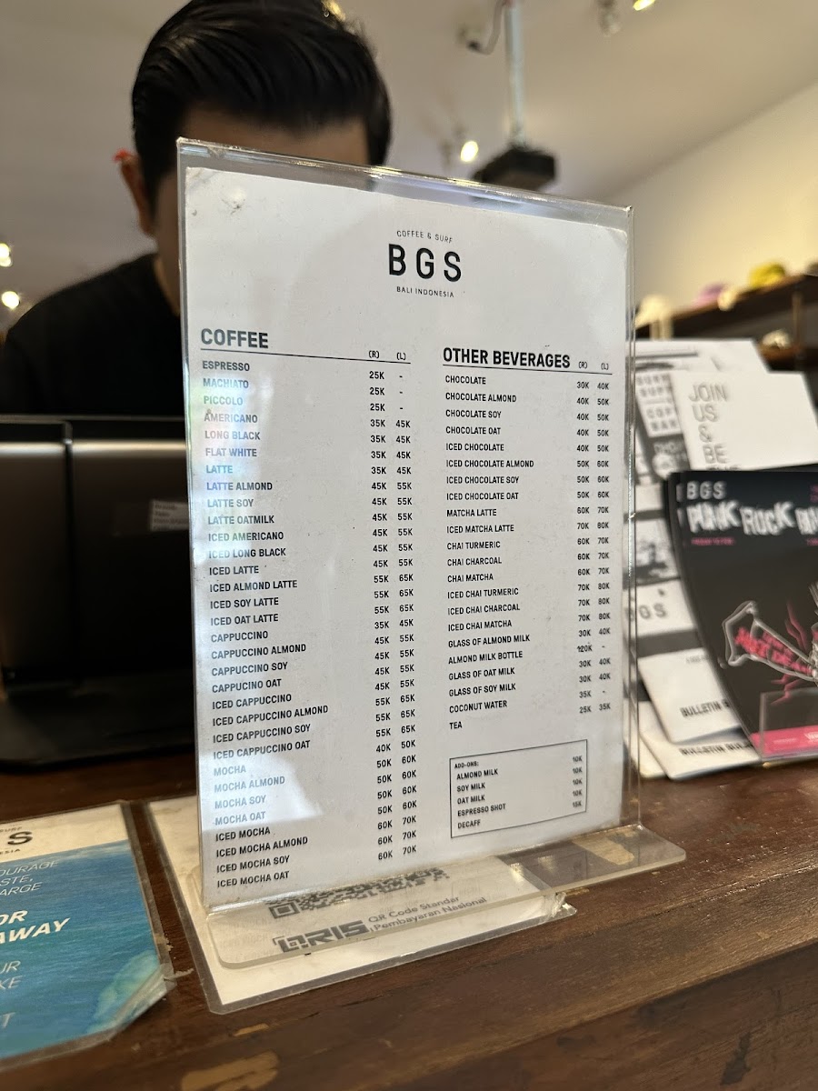 No visit to BGS would be complete without trying their famous Almond Milk Latte, a crowd favorite praised for its unique flavor and the slightly salty aftertaste that sets it apart from typical offerings. Priced at IDR 45.000, this drink has become a morning ritual for many, including Edlyn Arjanggi, who raves about the quality of their local blends. For those who prefer a stronger kick, the Iced Black is always a reliable option, as Edwin can attest after enjoying his post-surf boost.